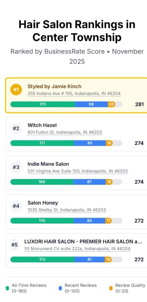 Her salon was also recognized as The Best of 2025 (Business Rating) by the Center Township Indiana, a reflection of strong client trust and satisfaction.